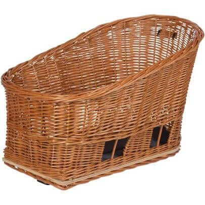 De Basil Pasja is een mooie rieten dierenmand voor achter op de fiets. De dierenmand is gemakkelijk afneembaar en beschikt over het functionele MIK montagesysteem.( exclusief de bagagedragerplaat 70170) Dankzij de handige openingen in de mand kan de hond worden vastgezet. De dierenmand is mooi naturel afgelakt en wordt geleverd inclusief wasbaar kussentje. De manden worden geproduceerd in Europa, ze zijn gemaakt van milieuvriendelijk wicker en afgewerkt met een milieuvriendelijke lak op waterbasis (Choose Green label). Maat large, 50 x 36 x 37 cm (Buitenwerkse maten). Voor extra veiligheid is er een draadkoepel beschikbaar (RMD35).
